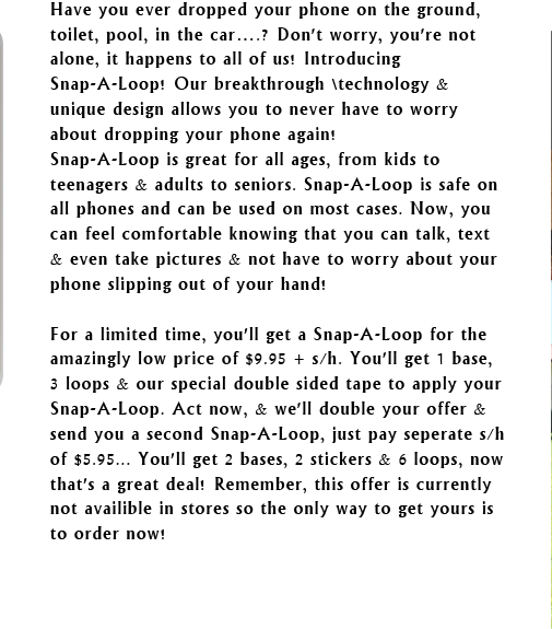 Order Snap-A-Loop for just $9.95 + $5.95 Shipping & Handling & as a *SPECIAL OFFER receive an additional Snap-A-Loop
